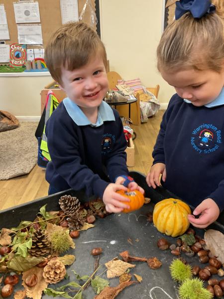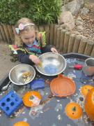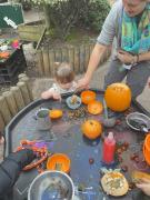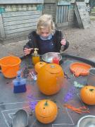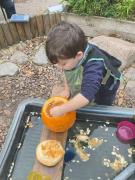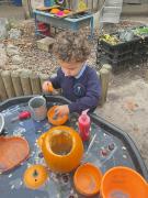 The children have taken part in lots of lovely autumnal activities this half term, they have played in the changing weather, splashing in puddles, played with conkers and acorns and painted and played with pumpkins