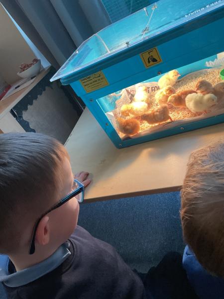We were lucky enough to have the opporunity to hatch some baby chicks this term, we have had them from 23rd February until 6th March