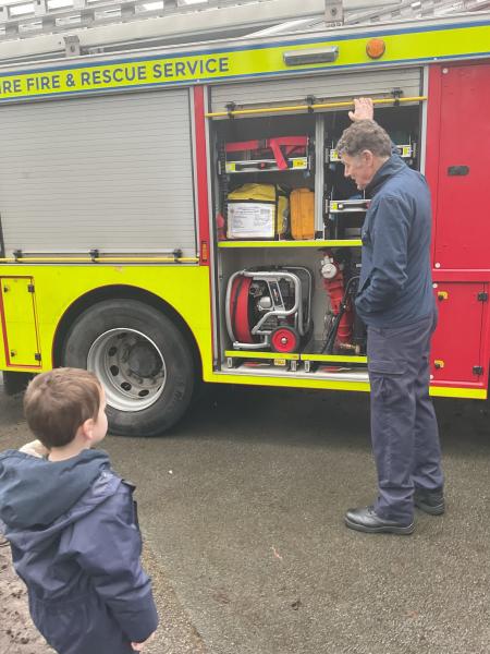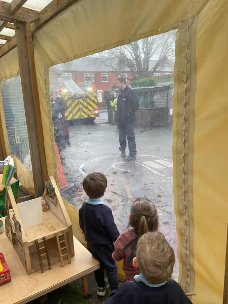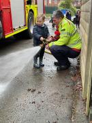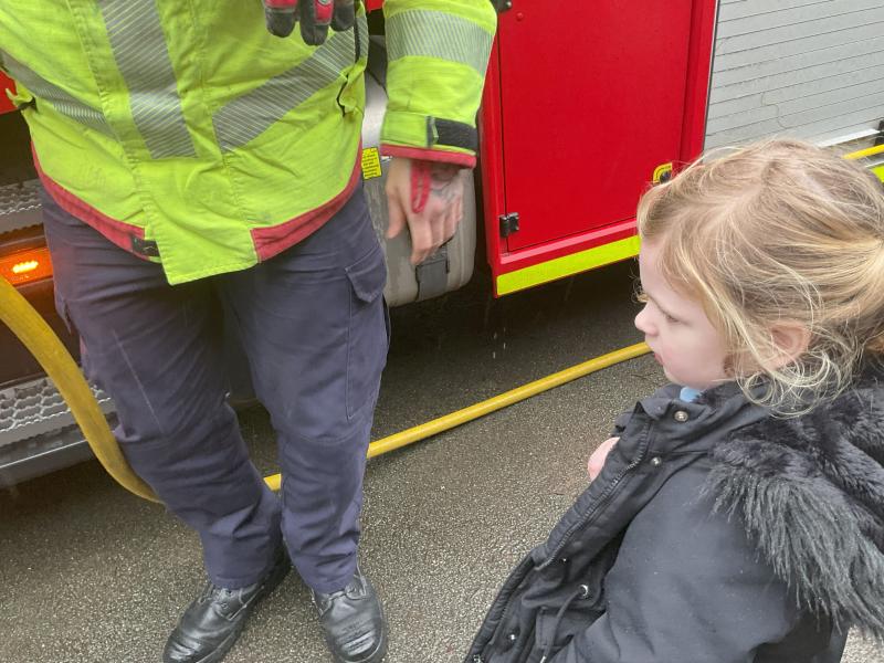 The children loved seeing the fire fighters and getting to try on some uniform. They were also lucky enough to have a go of the hose pipe! The children also enjoyed looking at the big fire engine.