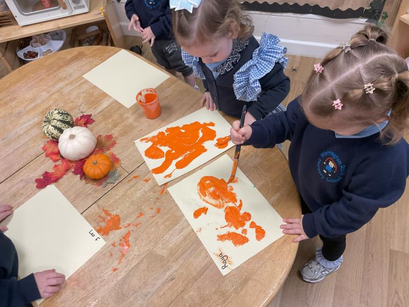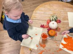 The children have taken part in some autumnal activities, including painting pumpkins and spiders with their orange, black and brown colours.