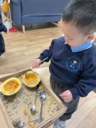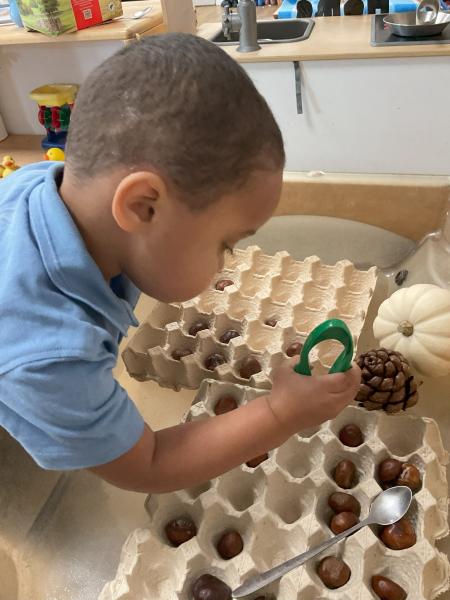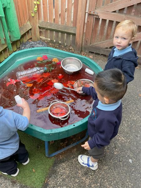 They have played with conkers and acorns and played in the outdoor learning environment in all of the fallen, crunchy leaves!